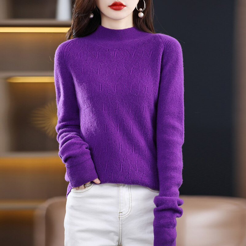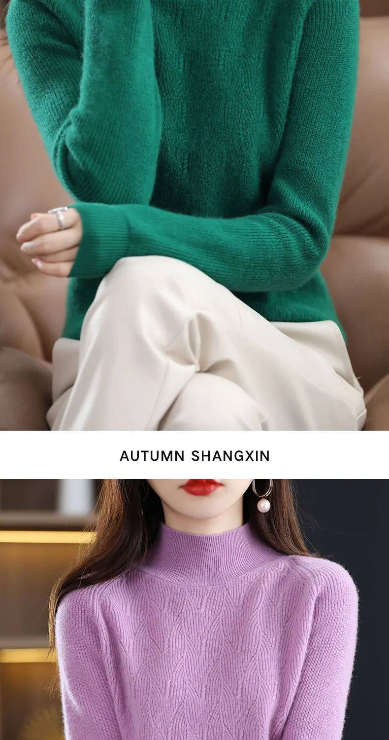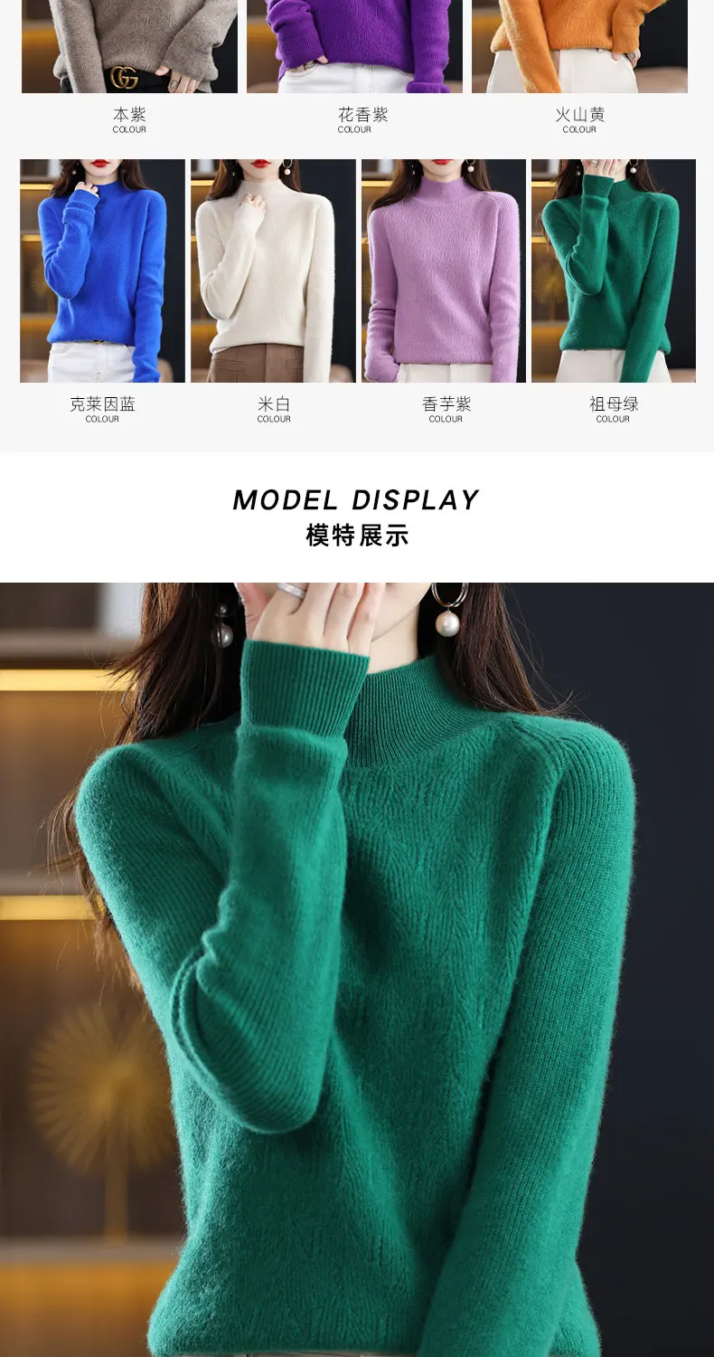 20230002Woman’s Sweaters Autumn Winter Thick Casual Coat Female Pullover Long Sleeve Half Turtleneck 100% Wool Knitted Top Jumper Blouse