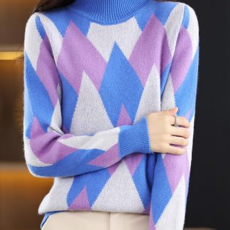 Woo100% Wool Knitted Sweater Autumn Winter Woman’s Sweater Half Turtleneck Long Sleeve Casua;Coat Female Pullover Blouse Jumper Top